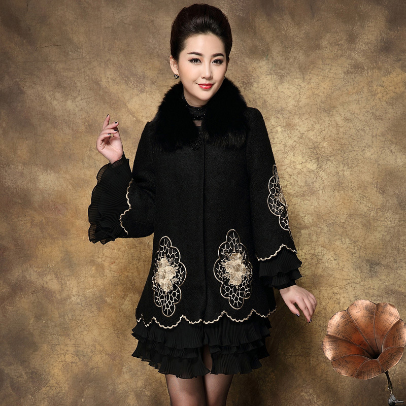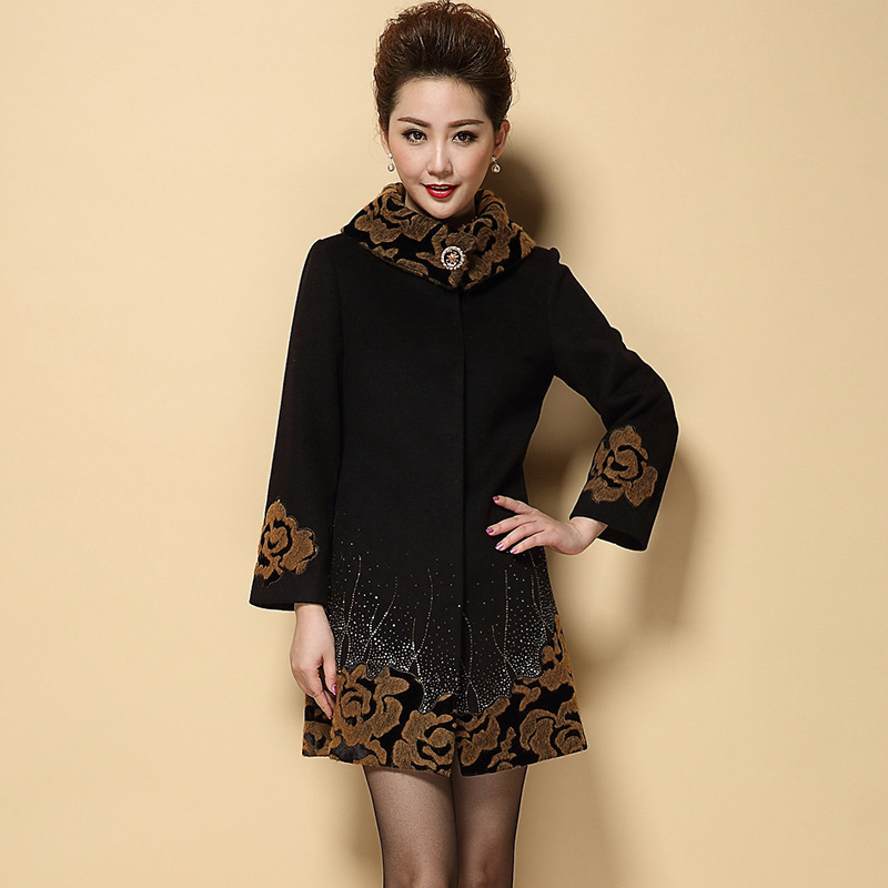 2015秋冬皮衣中長款寬松長袖大碼衣繡花歐美外套皮草修身時尚女裝 /