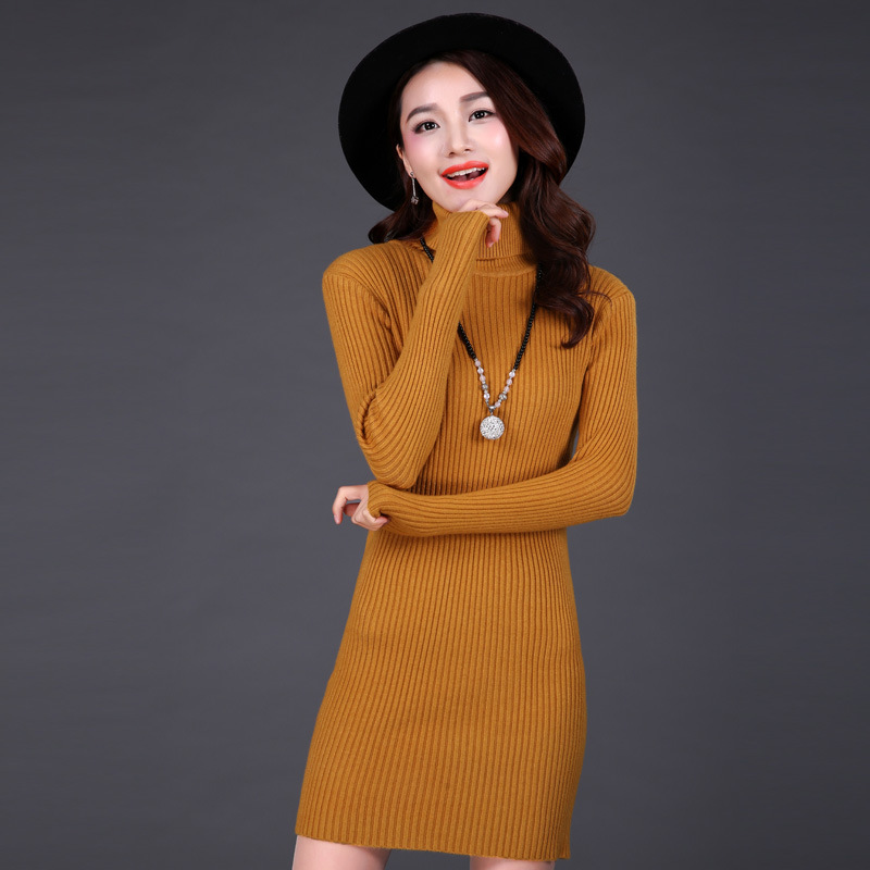 15年秋冬新款批發高領套頭純色中長款毛衣打底針織女衫保暖修身女 /