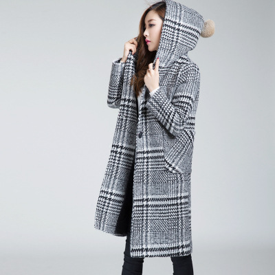 秋冬裝新款 韓版修身顯瘦中長款千鳥格子毛呢大衣外套女 /