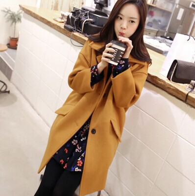 新款韓版時尚大碼女裝翻領呢子大衣修身中長款毛呢外套 /