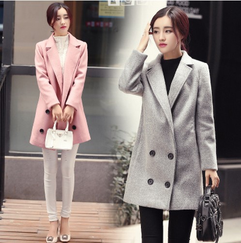 一件代發(fā)2015冬季新品純色白搭夾棉毛呢外套繭型寬松韓版毛呢大衣 /