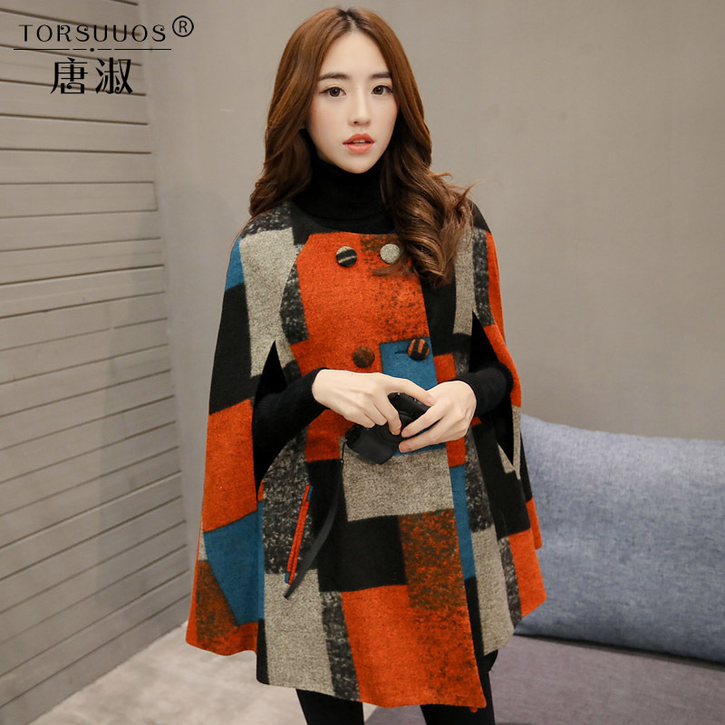 唐淑斗篷毛呢外套韓版2015秋冬復古披風披肩中長款呢子大衣女外套 /