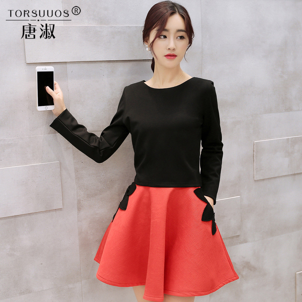 2015韓版秋冬季長袖長袖女裝新款套裝裙打底針織兩件套連衣裙 /