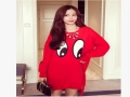 孕婦裝冬裝新款趣味眼睛下擺拉鏈衛衣不倒絨連衣裙 /