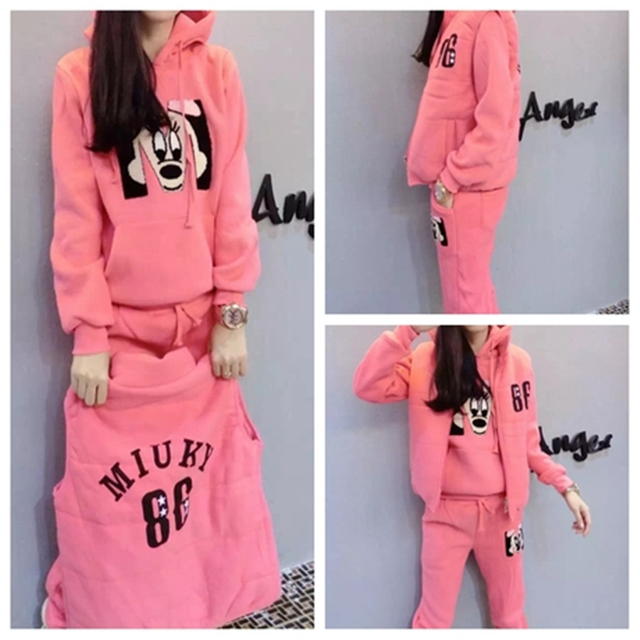 實拍秋冬新款潮牌時尚衛衣套裝加絨加厚刺繡衛衣三件套女潮 /