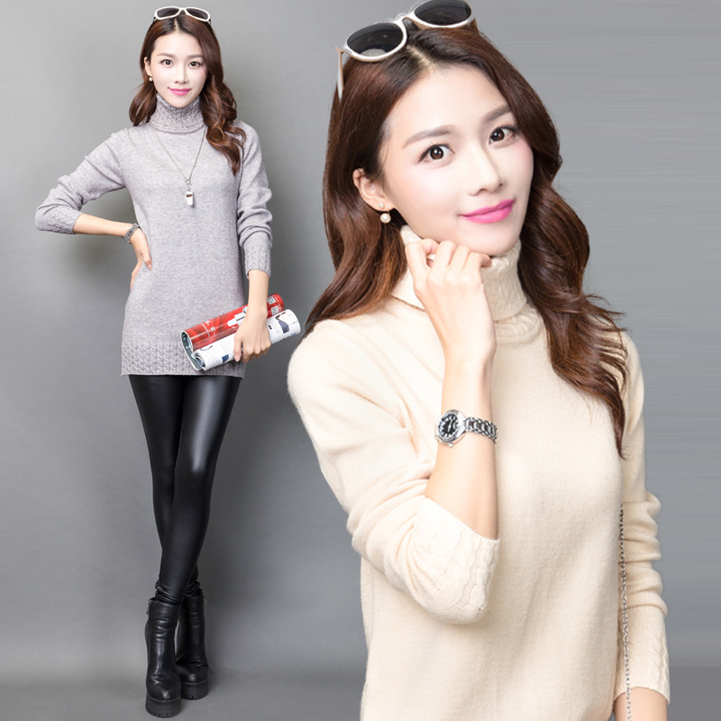 毛衣外套女韓版潮新款韓國東大門2015冬季寬松高領(lǐng)針織衫套頭批發(fā) /