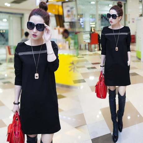 2012新款韓版寬松大碼女裝長袖女t恤中長款打底衫包臀連衣裙女 /