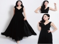 2014春季新款 收腰大擺 V領 低胸 純色 黑色 美妃 連衣裙女 /