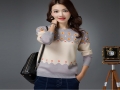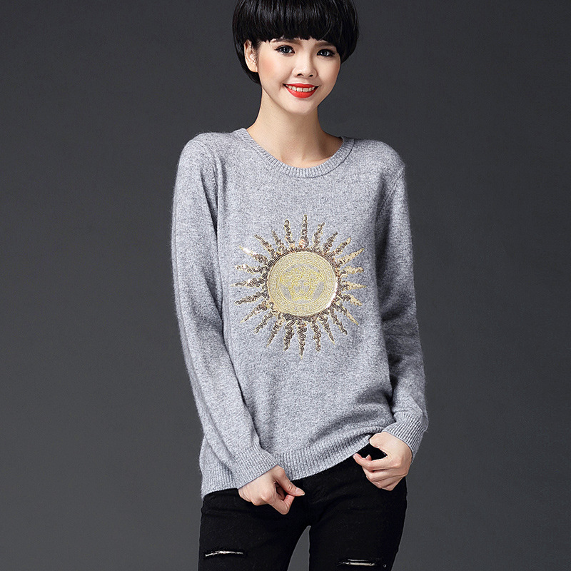 2015秋冬新款女士貂絨套頭毛衣 圓領(lǐng)太陽圖案打底衫針織衫 /