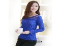 2015冬季新款加絨加厚蕾絲圓領羊胎絨蕾絲打底衫 /