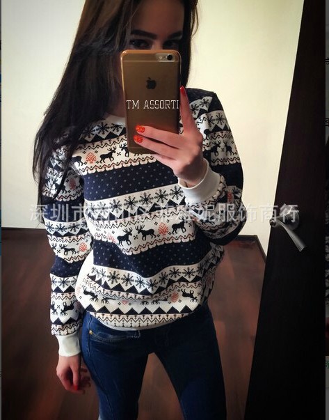 2015秋冬新款速賣通EBAY外貿熱賣歐美圣誕節小鹿印花長袖圓領衛衣 /