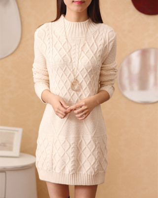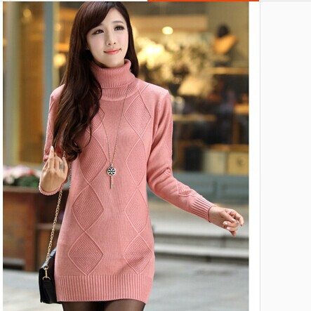 2015新款毛衣女復古麻花加厚半高領中長款針織打底衫 /