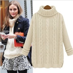 供應歐洲站新款中長款套頭高領寬松加厚復古麻花打底衫批發 /