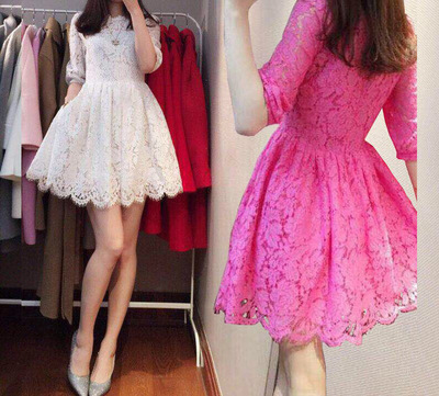 簡介: 貨源類別現貨 主圖來源實拍有模特 風格歐美 圖案蝴蝶結 工藝拼貼/拼接 產地杭州 款式基本款 組合形式單件 裙長中裙 裙型一步裙 領型娃娃領 袖型常規袖 袖長短袖 腰型中腰 衣門襟拉鏈 流行元素拼接,蝴蝶結,刺繡,鏤空 上市年份/季節2015夏季 面料名稱蕾絲 主面料成分醋酯纖維 主面料成分的含量35(%)