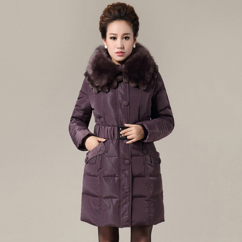 2015新款毛領(lǐng)中老年女士羽絨服加肥加大中長鴨絨上衣韓版外套媽媽 /