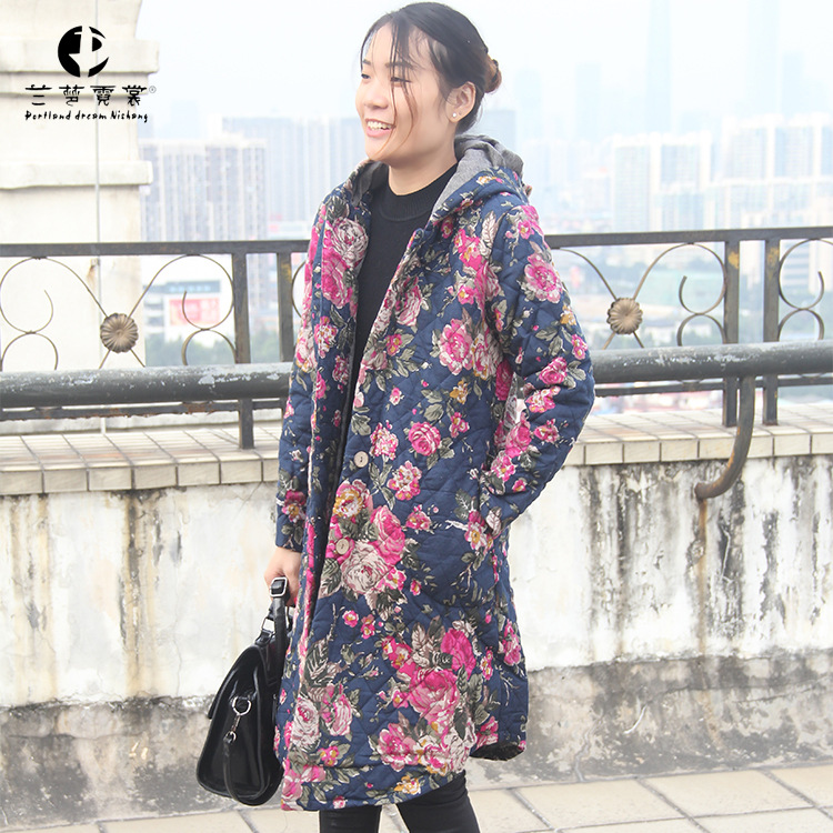冬季民族風印花棉麻棉衣中長款加厚保暖2015韓版時尚女裝廠家直供 /
