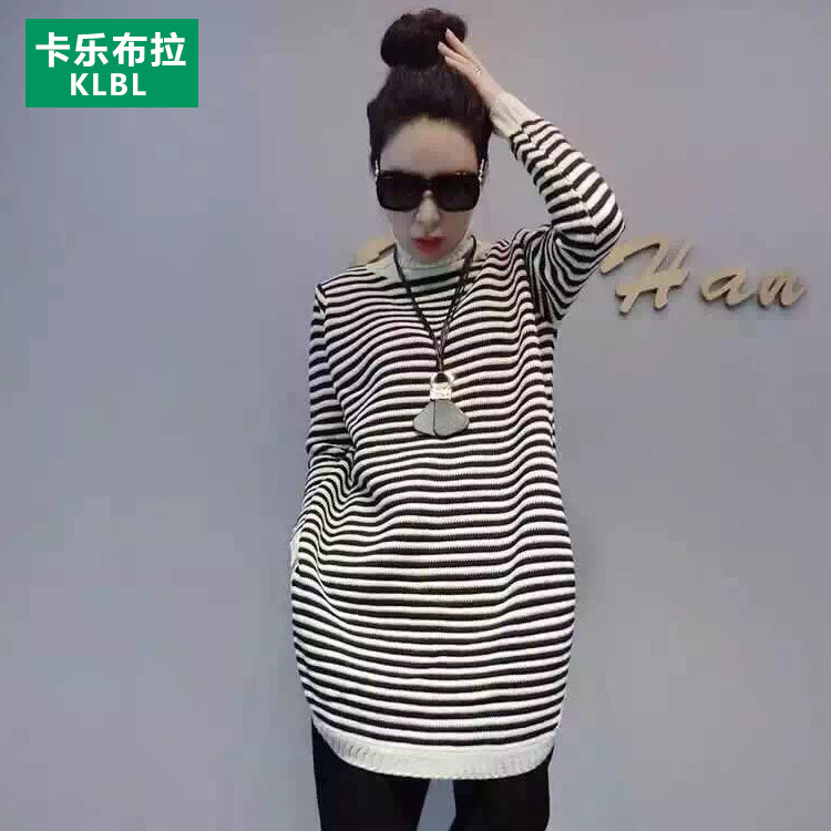2015年新秋冬歐洲站經典條紋高領側開叉中長款毛衣針織衫優質1124 /
