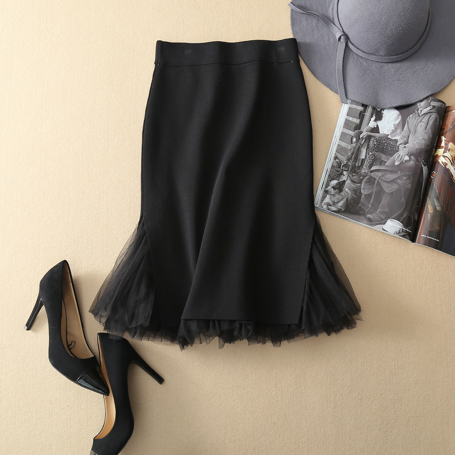 2015秋冬新款魚尾包臀裙納米絲針織網紗拼接半身裙一步裙 /