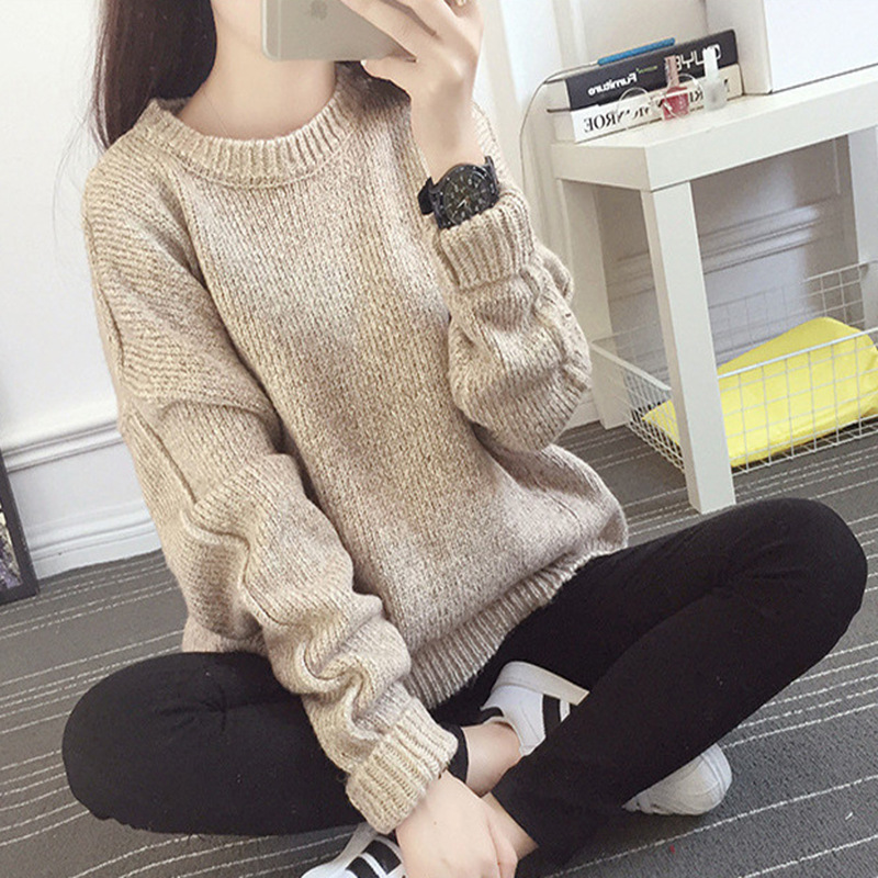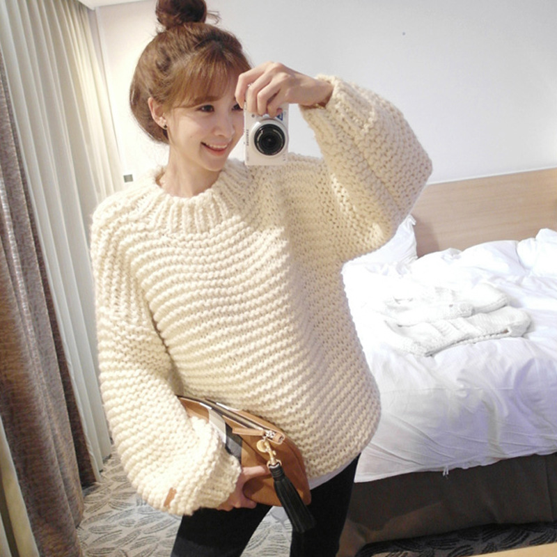 2015秋裝加厚棒針寬松羊毛衫 韓國東大門純色女式毛衣套頭女批發 /