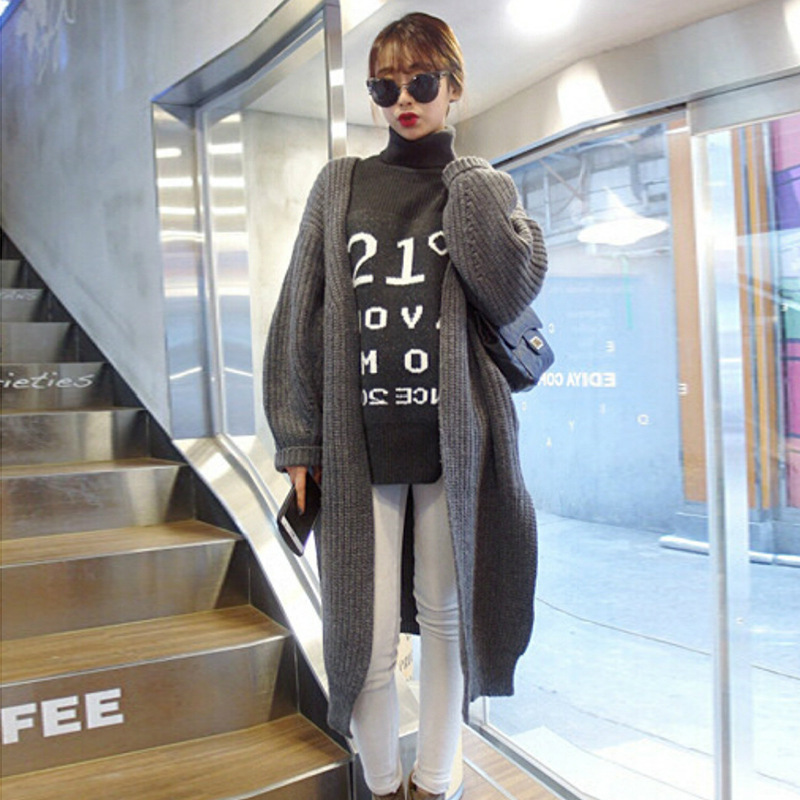 淘寶爆款秋冬韓版純色女式針織開衫 新品寬松型長款毛衣女批發 /