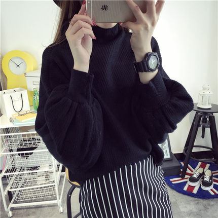 韓國半高領(lǐng)蝙蝠衫大毛衣泡泡袖上衣女衣服秋燈籠袖毛衣潮套頭短款 /