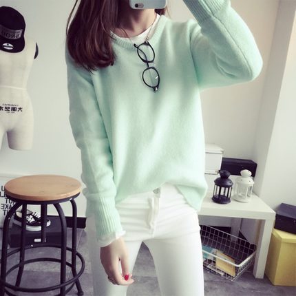 套頭毛衣女學(xué)生韓版寬松短款學(xué)生上衣冬裝上衣學(xué)院風(fēng)純色打底衫 /