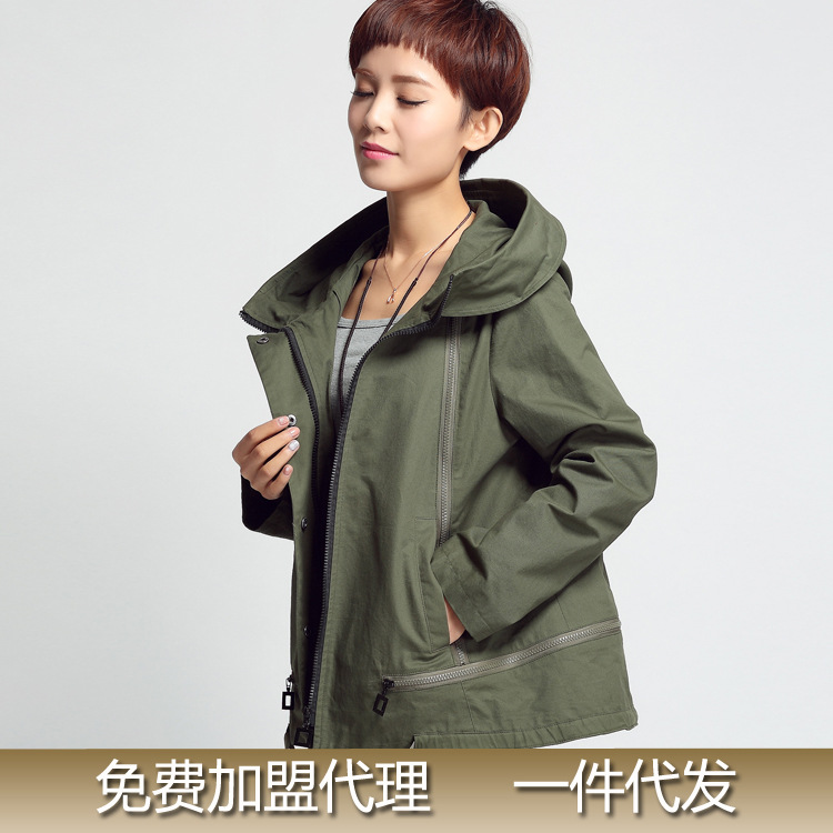簡介: 貨號9336 產地杭州 主圖來源實拍有模特 貨源類別現貨 是否庫存否 面料名稱棉布 主面料成分棉 主面料成分的含量100(%) 圖案純色 風格休閑 版型寬松型 組合形式單件套 厚薄普通 衣長普通款(50cm<衣長≤65cm) 袖長長袖 袖型常規袖 領型連帽/帽領 衣門襟拉鏈 上市年份/季節2015秋季 顏色卡其色,軍綠色,橡皮紅,藏青色