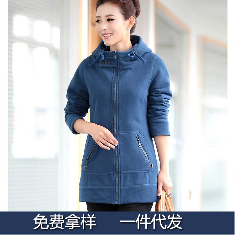 秋冬新品韓版顯瘦中老年30-40-50歲帶帽開衫中長款衛衣 免費拿樣 /