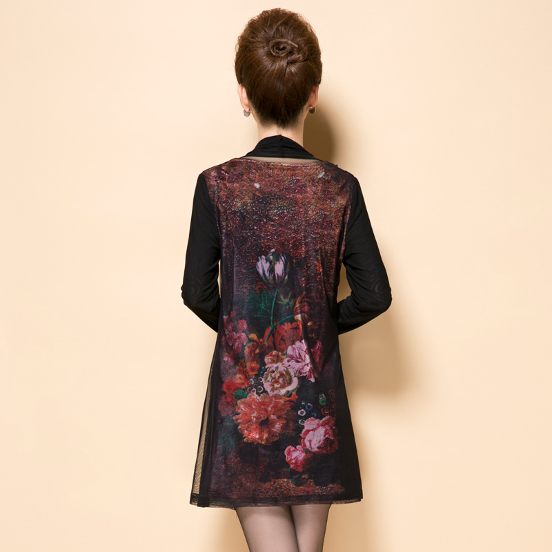 模特實拍2015秋新款復古印花披肩假兩件修身大碼連衣裙 /