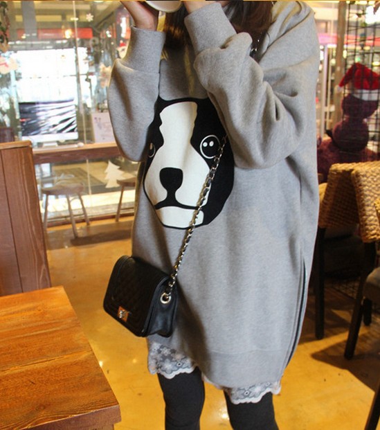 5880#2015孕婦裝秋冬衛衣外套韓版中長款加絨加厚寬松大碼連衣裙 /