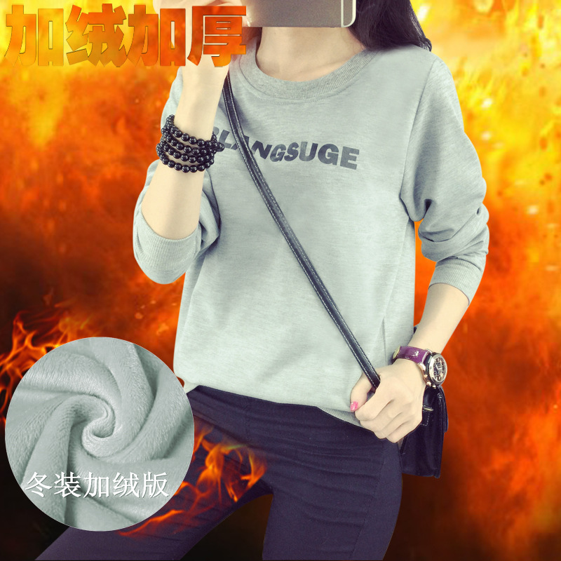 實拍加厚加絨冬裝韓版寬松學生衛衣長袖T恤女字母印花打底衫6696 /