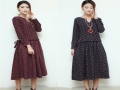 批發供應 韓版大碼女裝長袖寬松休閑顯瘦褶皺拼接連衣裙 /
