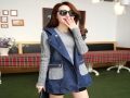 2015秋裝新款女裝修身針織袖拼接牛仔外套中長款女士短外套30019 /
