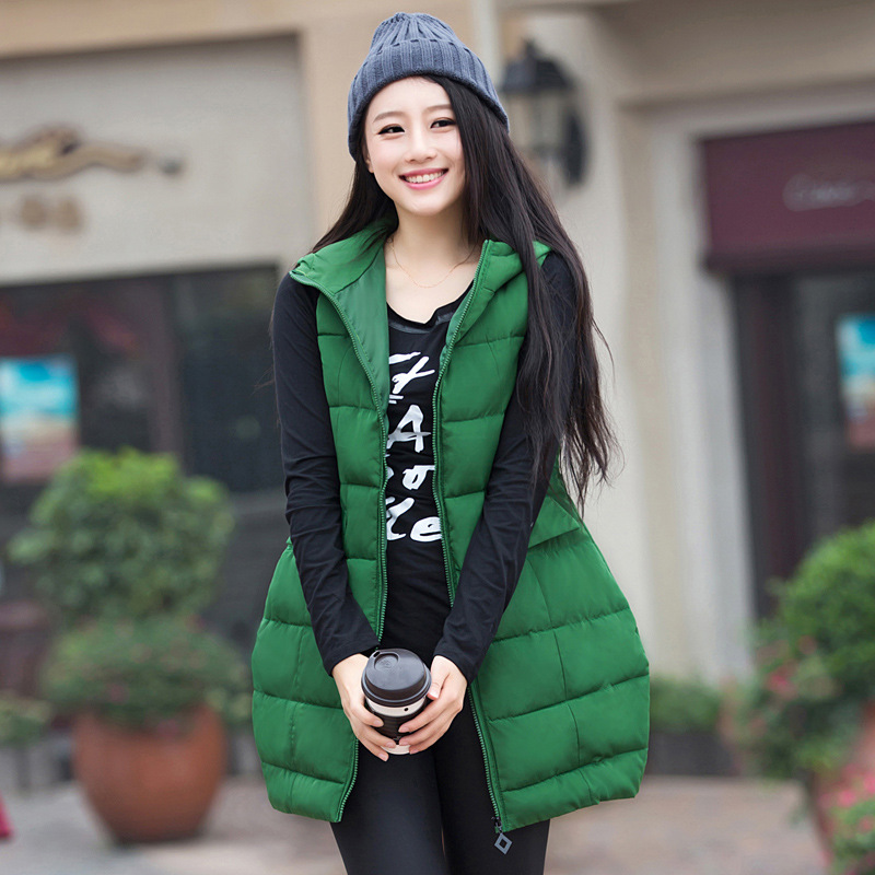 2015新款時尚中長款修身羽絨棉馬甲 潮流長款韓版連帽 女外套 爆 /
