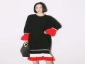 韓版圓領針織長袖下擺百褶連衣裙女秋冬新款 /