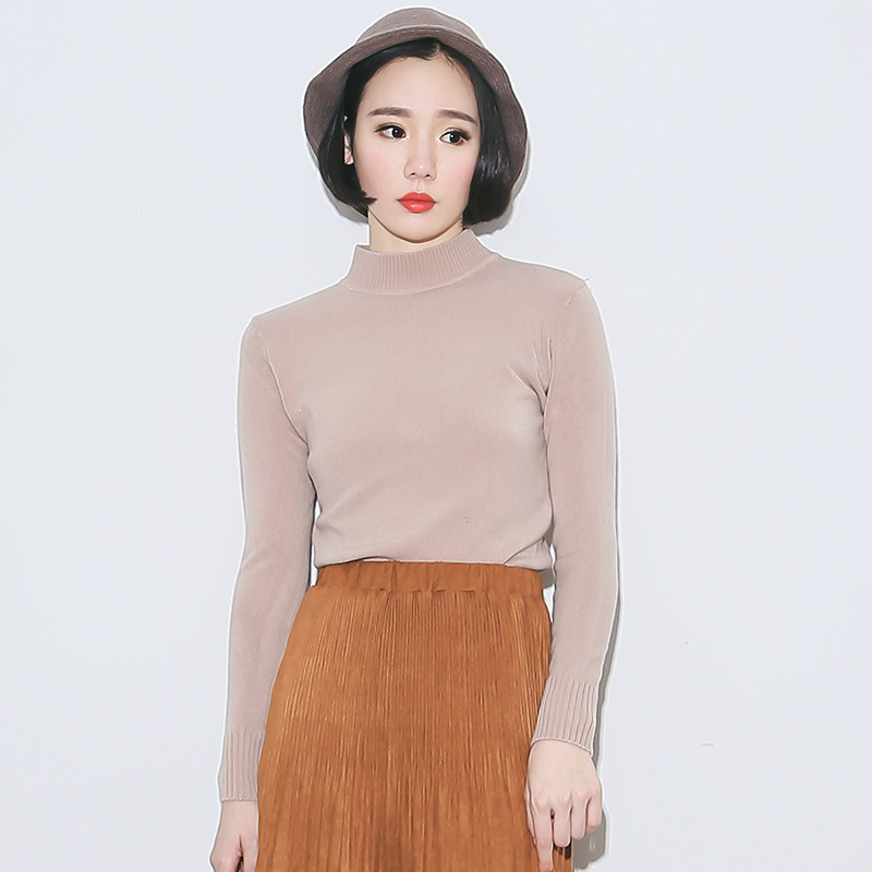 韓版立領長袖純色針織時尚套頭毛衣女裝秋冬2015新款 /