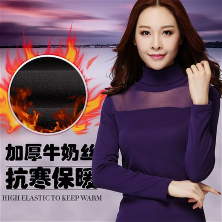2015秋冬新款女裝韓版加絨加厚高領保暖T恤網紗打底衫大碼上衣女 /