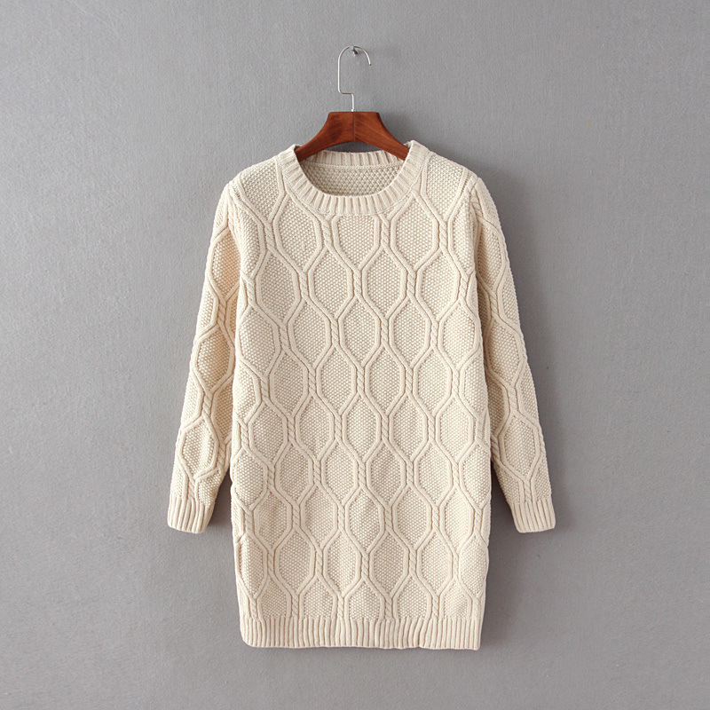 8518-韓版潮2015冬季女裝新款 純色圓領幾何六邊形圖案套頭毛衣 /