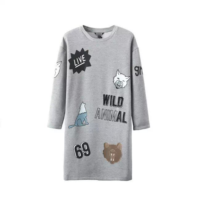 2357-歐美風2016春季女裝新款 圓領長款卡通圖案印花長袖加絨衛衣 /