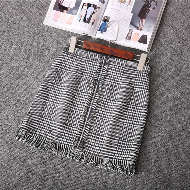 2015秋冬新款格子 流蘇半身裙毛呢短裙包臀裙 A字裙一件代發微信 /