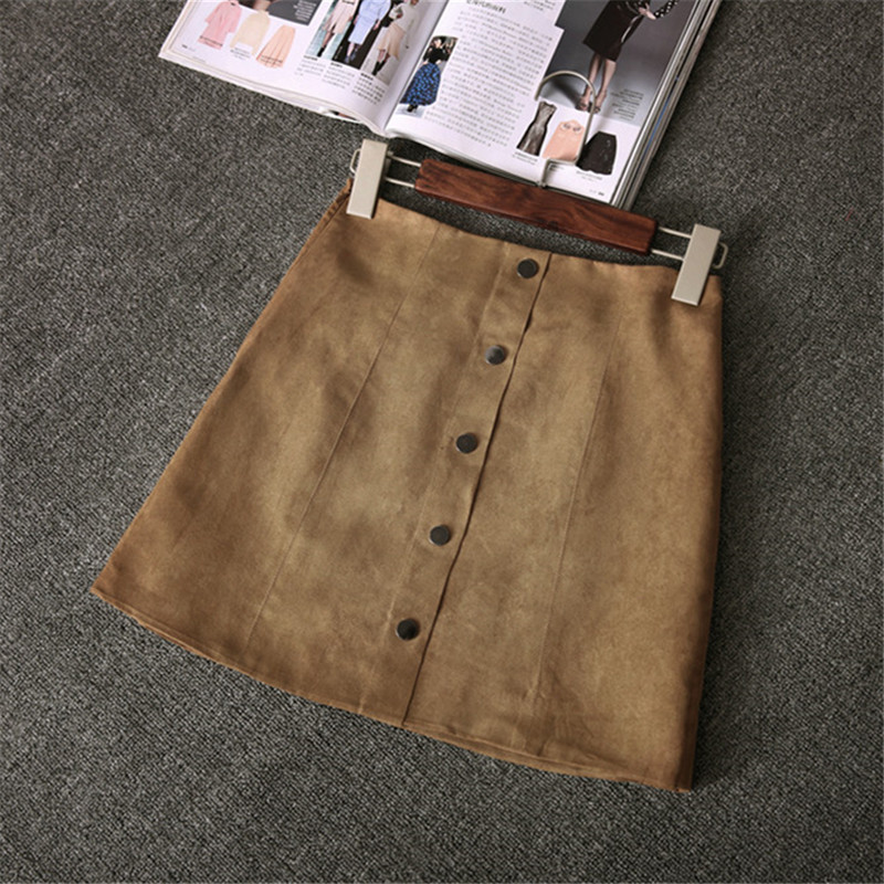 2015秋裝新款半身裙麂皮絨半身裙 a裙前排扣短裙歐美明星款秋冬 /