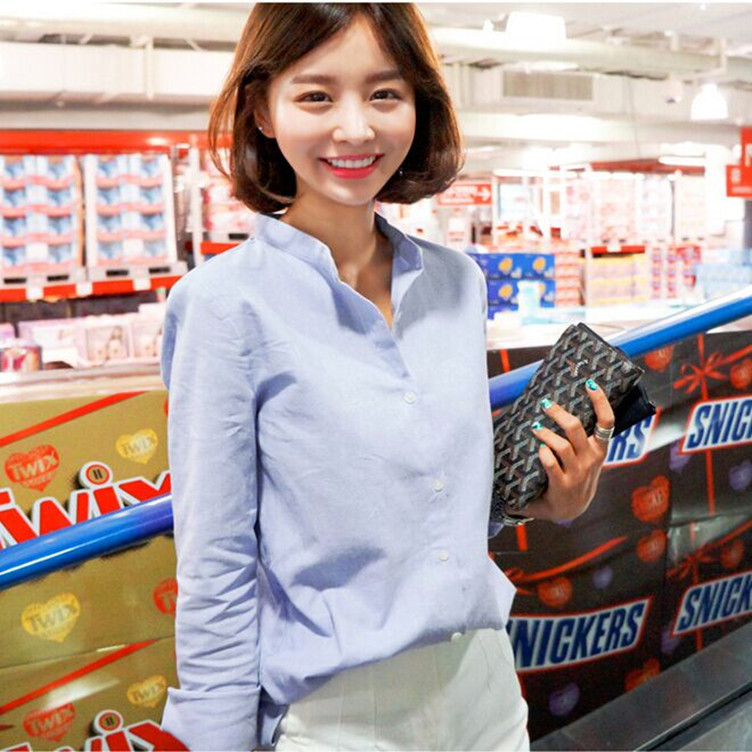 2015春秋裝韓版大碼寬松顯瘦白色襯衣休閑百搭棉麻立領(lǐng)襯衫女長袖 /