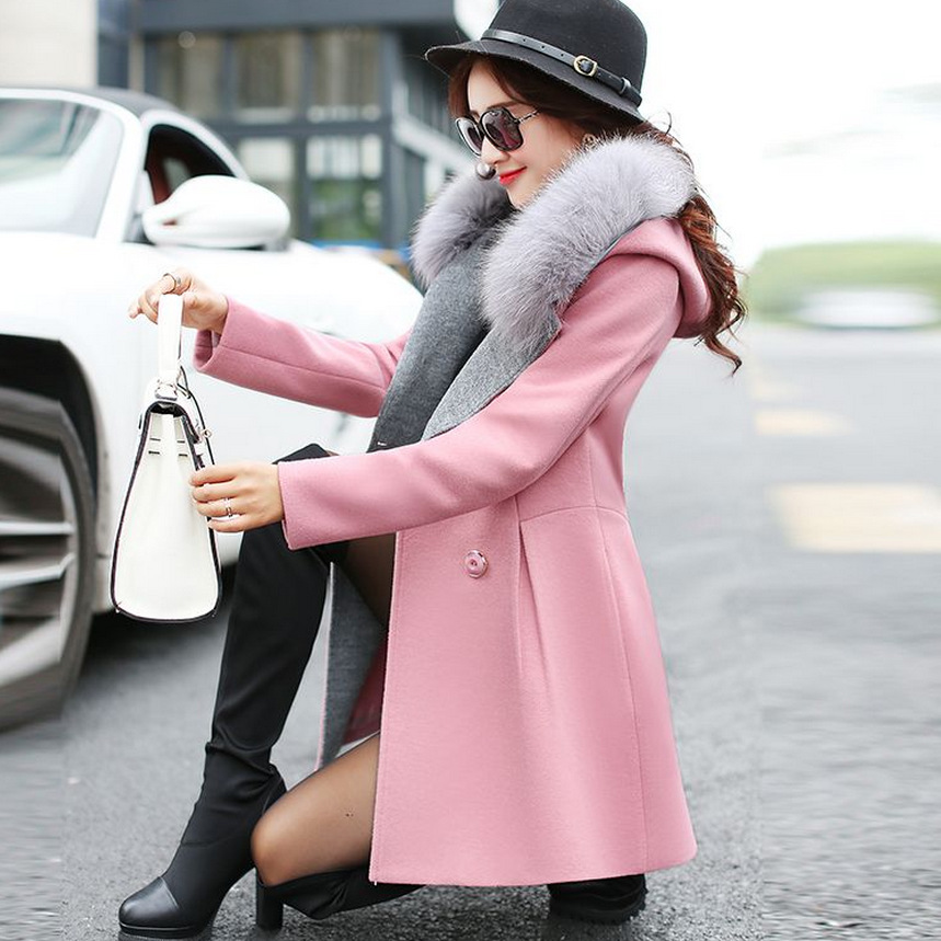 2015新款女裝毛呢外套女中長款狐貍毛領(lǐng)名媛小香風(fēng)呢子大衣女 /