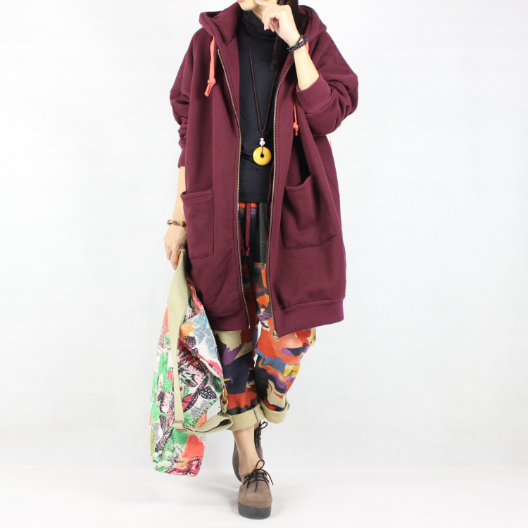 驛墅 秋冬新款大碼女裝 ysbs超寬松大碼插肩袖連帽加絨長款外套女 /
