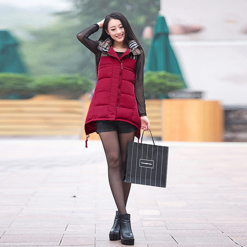 現貨批發韓版拼接中長款時尚修身個性潮流不規則女款棉馬甲背心 /