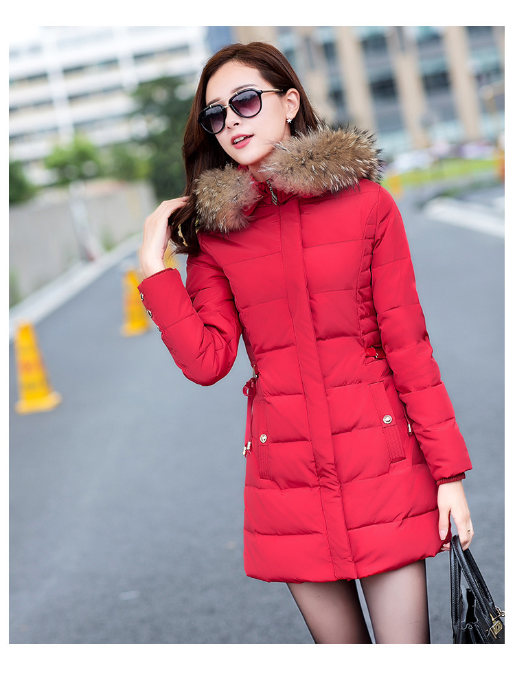 2015韓版修身時尚可拆卸大毛領(lǐng)中長款連帽羽絨服 女裝 100%白鴨絨 /