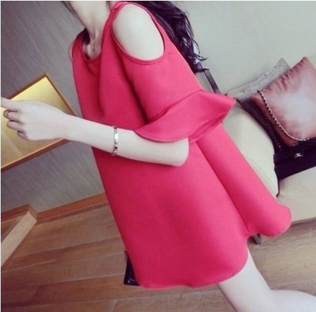 2015速賣通ebay新款露肩荷葉袖韓版A字娃娃大碼女裝連衣裙 /