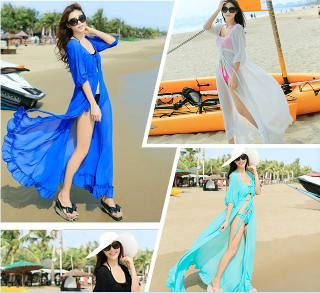 2015速賣通ebay新款連衣裙性感開衫防曬雪紡長裙海邊度假沙灘裙 /