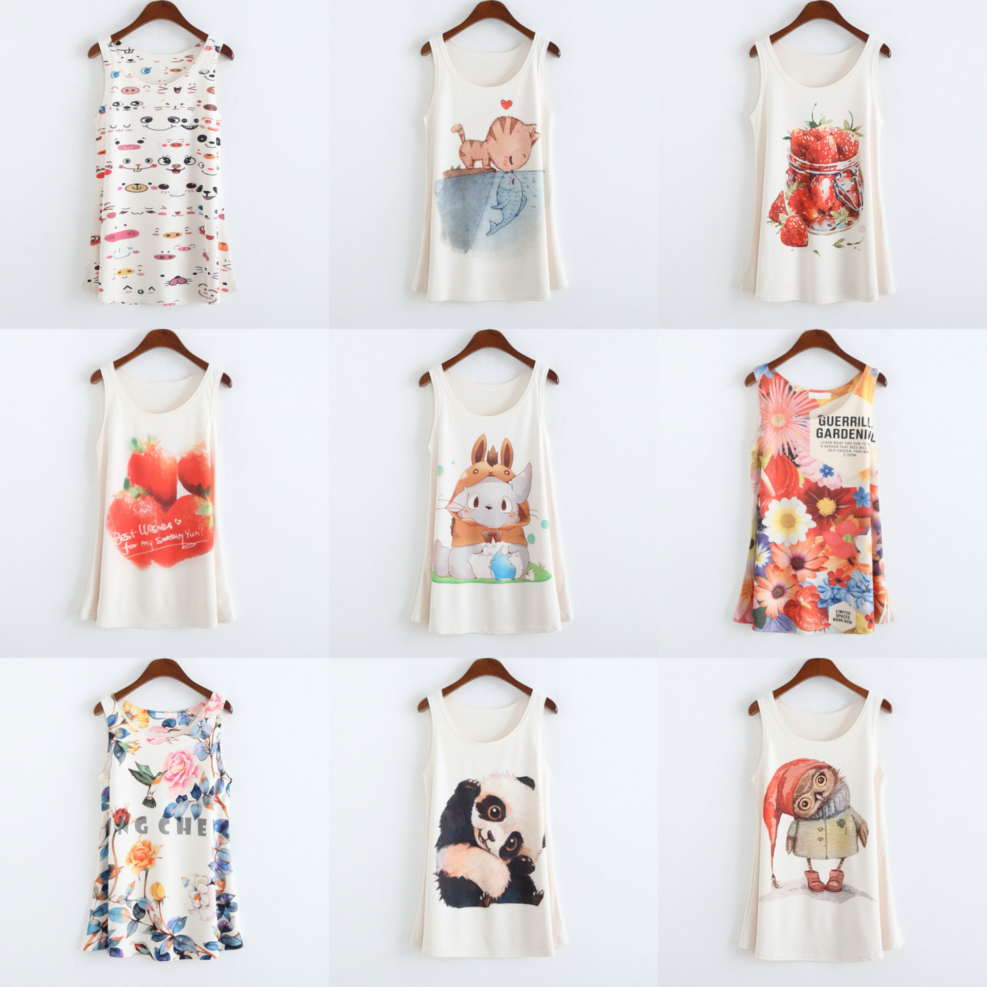 2015原宿韓版新款 數(shù)碼印花 女士工字背心 速賣通ebay熱銷爆款 /
