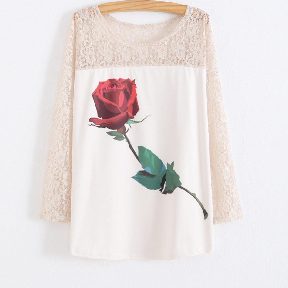 2016新品春季韓版蕾絲長袖T恤女性印花女式T恤阿里巴巴1688批發(fā)網(wǎng) /
